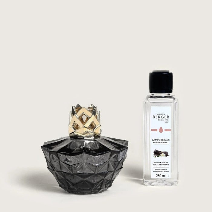 Realza tu hogar con el Cofre Lampe Berger Kali Noire. Su diseño esculpido juega con la luz, mientras que la fragancia Splendeur Vanillée envuelve tu espacio en una atmósfera moderna y sofisticada.