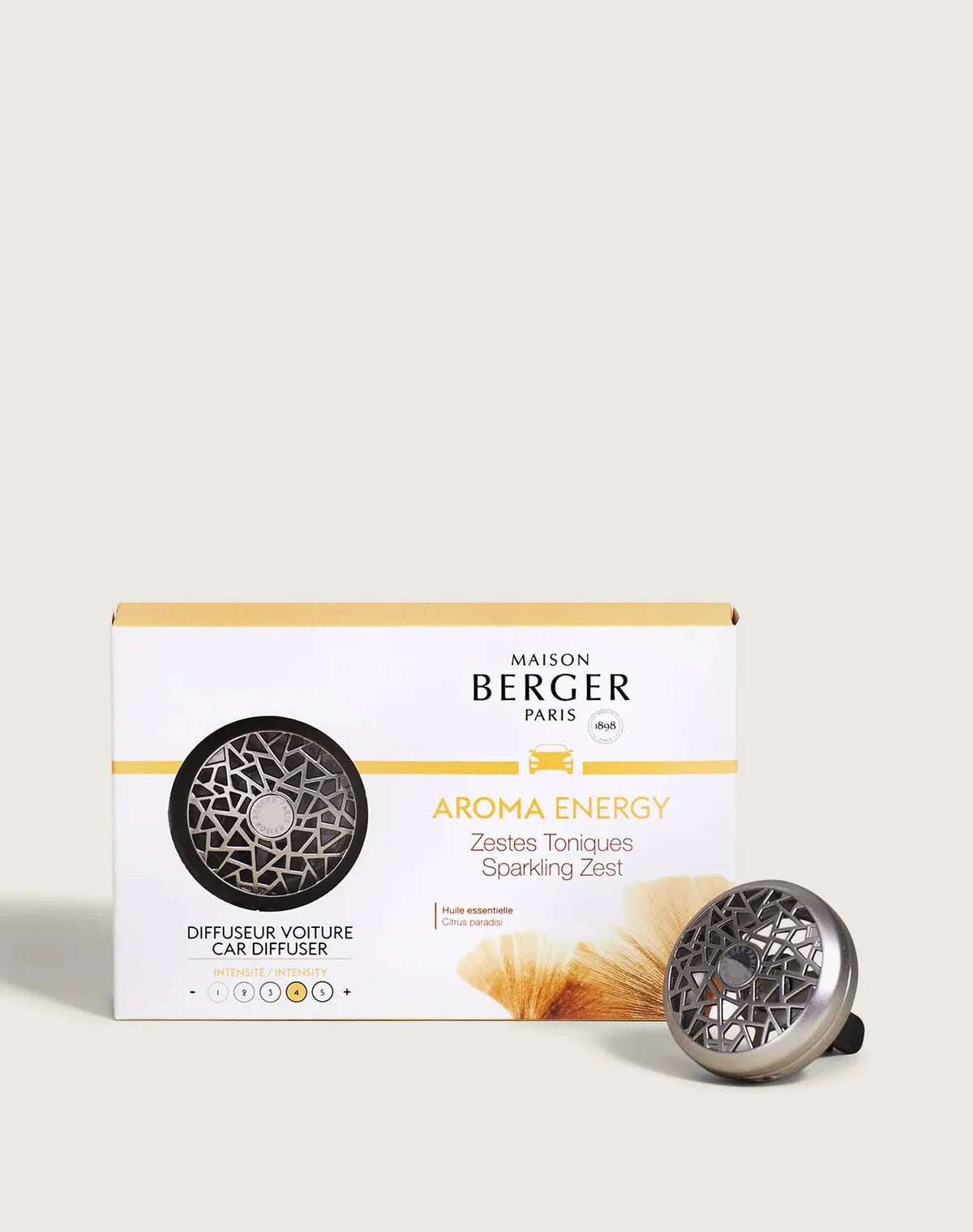 ¿Que los viajes en coches son aburridos? Olvídate de eso con este difusor que te llenará de ánimo y energía. Zestes Toniques es una oda al frescor renovado: la energía de sus notas cítricas se reviste de sensualidad con los aromas especiados del almizcle. La elección del aceite esencial de pomelo promete un ambiente saludable, refrescante y vigorizante.